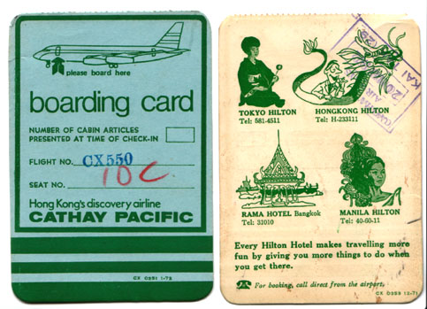これは昭和47年当時、キャセイ航空のボディングパス。